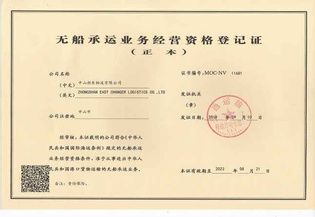 • NVOCC Certificate